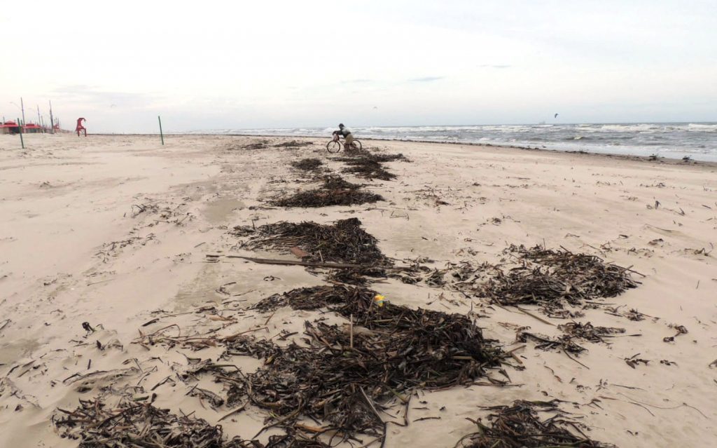 Quem passar pela beira mar de Imbé observará uma grande quantidade de plantas espalhadas na orla. Trata-se de um fenômeno natural que ocorre sempre quando há um grande volume de chuva associado a um mar forte, de ressaca, como ocorrido nos últimos dias.