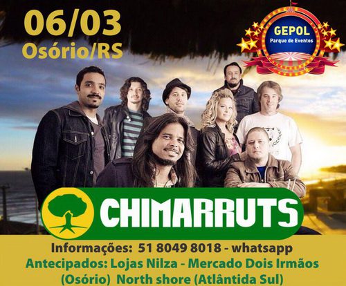 chimarrutspopupA Banda Chimarruts fará show em Osório, no domingo (06), a partir das 20h00min, no Parque de Eventos Gepol.