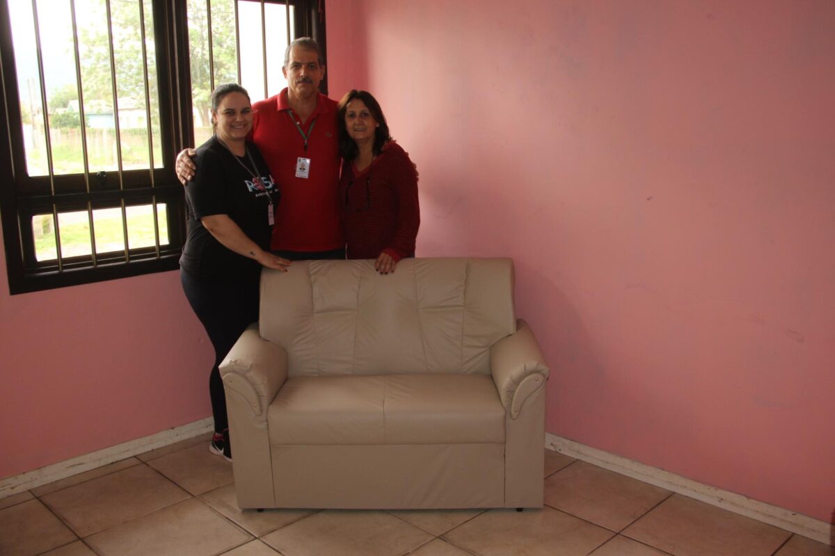 Sofá é restaurado pelas Oficinas Jogue Limpo em Osório 10Na manhã desta segunda-feira, (11/09), a Secretária de Assistência Social e Habitação Vera Regina Nunes de Oliveira, fez entrega de mais um sofá restaurado pelas oficinas de restauração de móveis e estofados do Programa Jogue Limpo com Osório.