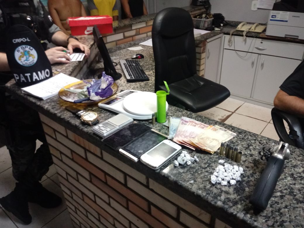 Drogas, um revólver, balança de precisão, munição e caderno com anotações foram apreendidos.
