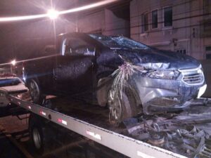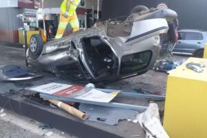 Três pessoas ficam feridas após carro capotar na praça do pedágio em Santo Antônio da Patrulha 08/02/2021