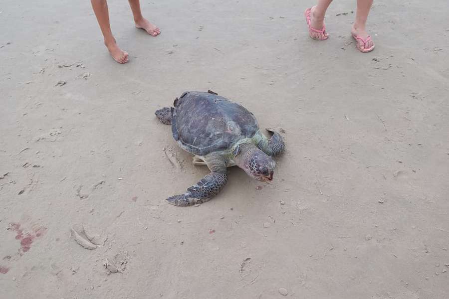 Na tarde desse sábado (13), a equipe da PATRAM de Torres realizou averiguação quanto uma ligação telefônica de que na orla marítima da praia Gaúcha, em Torres, havia uma tartaruga marinha machucada.