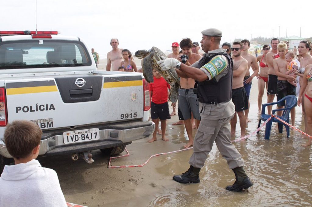 O animal foi recolhido e conduzido ao Centro de Estudos Costeiros, Limnológicos e Marinhos (Ceclimar), em Imbé, onde será avaliado e receberá os devidos cuidados.