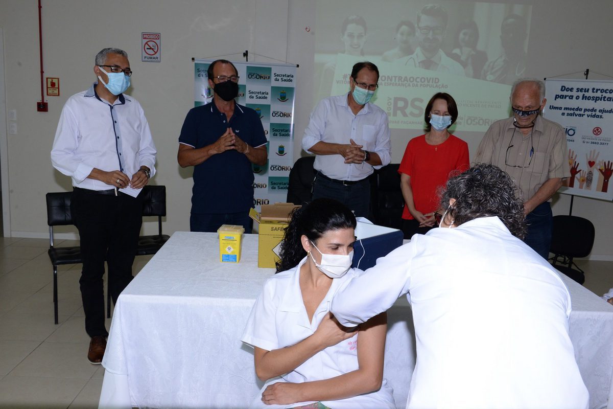 Na tarde desta terça-feira, 19, no auditório do Hospital São Vicente de Paulo, em Osório, ocorreu a vacinação da primeira pessoa do Litoral Norte, contra a COVID-19.