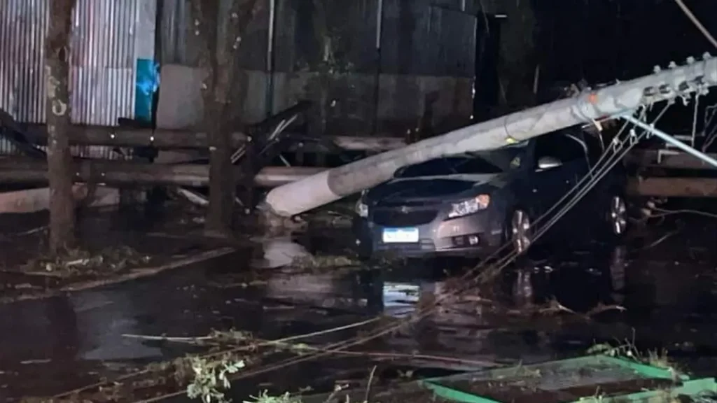 A estação meteorológica oficial da cidade registrou ventos de 70 km/h, mas os danos observados sugerem que rajadas mais fortes ocorreram em áreas específicas.