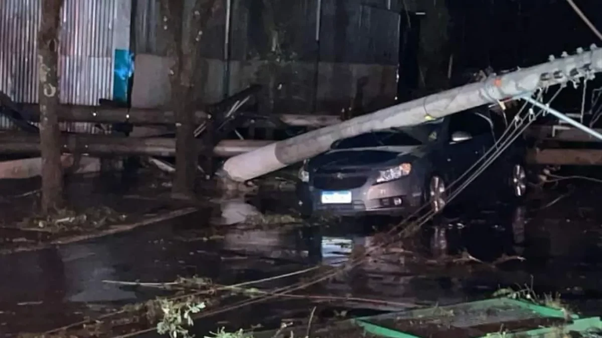 A tempestade causou quedas de postes e árvores, deixando partes da cidade sem luz e com problemas no abastecimento de água.