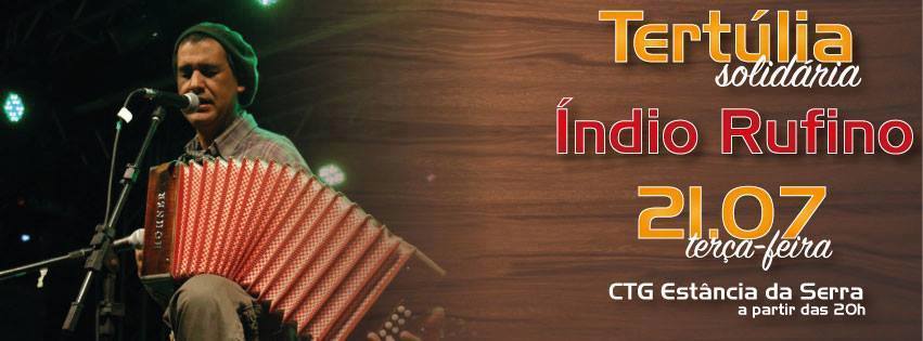Acontece nesta terça-feira (21), tertúlia solidária em prol do cantor nativista Indio Rufino. O evento ocorre à partir das 20h no CTG Estância da Serra, no centro de Osório.