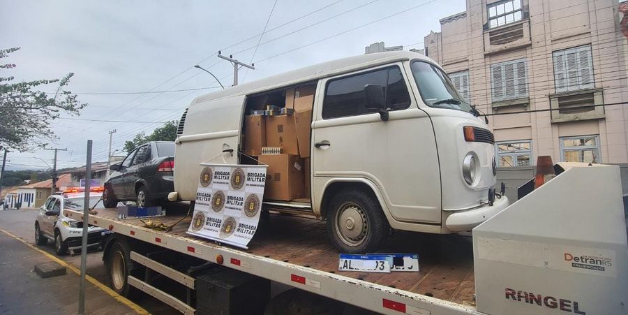 Em consulta a sistemas informatizados de segurança, foi constatado que a Kombi havia sido roubada no município de São Jerônimo no último dia 03 e estava com as placas clonadas, sendo as originais de Gravataí.