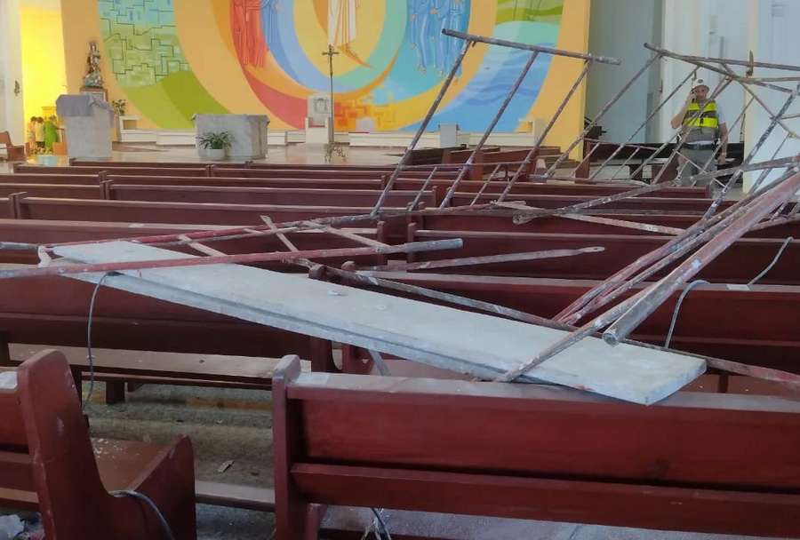 A vítima acabou caindo em cima dos bancos, no interior da igreja.