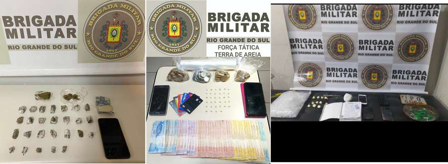 A Brigada Militar prendeu traficantes nas últimas horas, em Balneário Pinhal, Caraá e Terra de Areia.