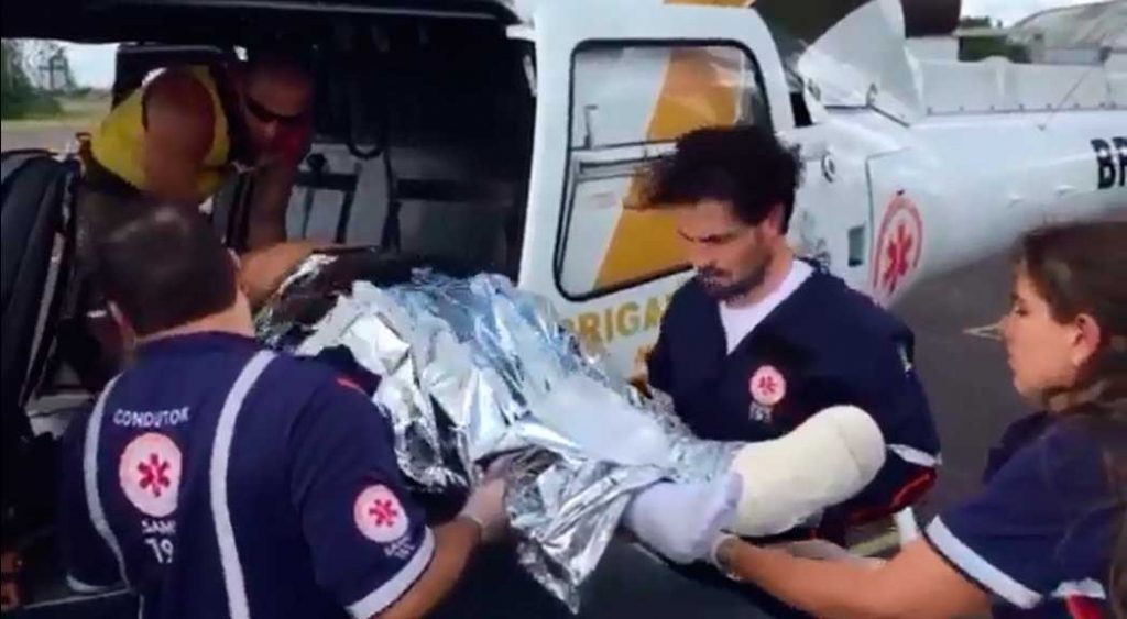 O helicóptero da Brigada Militar já transportou uma das vítimas e está voltando para o litoral, para resgatar o outro.