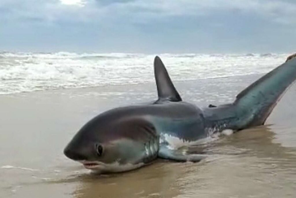 O animal posteriormente identificado como tubarão raposa, tinha cerca de dois metros de comprimento e vive na costa brasileira.
