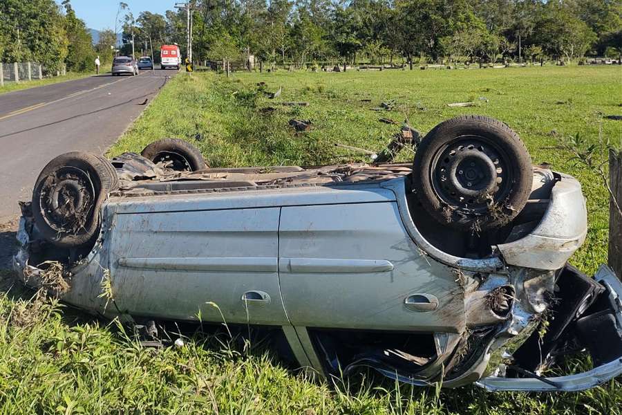 Um motorista perdeu o controle do veículo e capotou o carro, na manhã desta sexta-feira (26), em Osório.