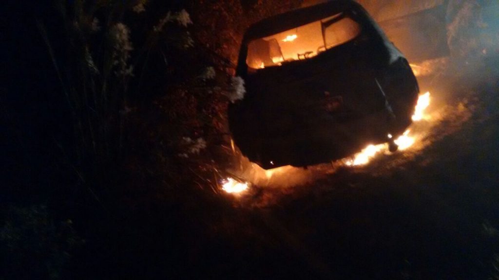 Um veículo clonado foi incendiado às margens da RS-474, próximo ao pedágio, em Santo Antônio da Patrulha, por volta das 5h deste sábado (04).