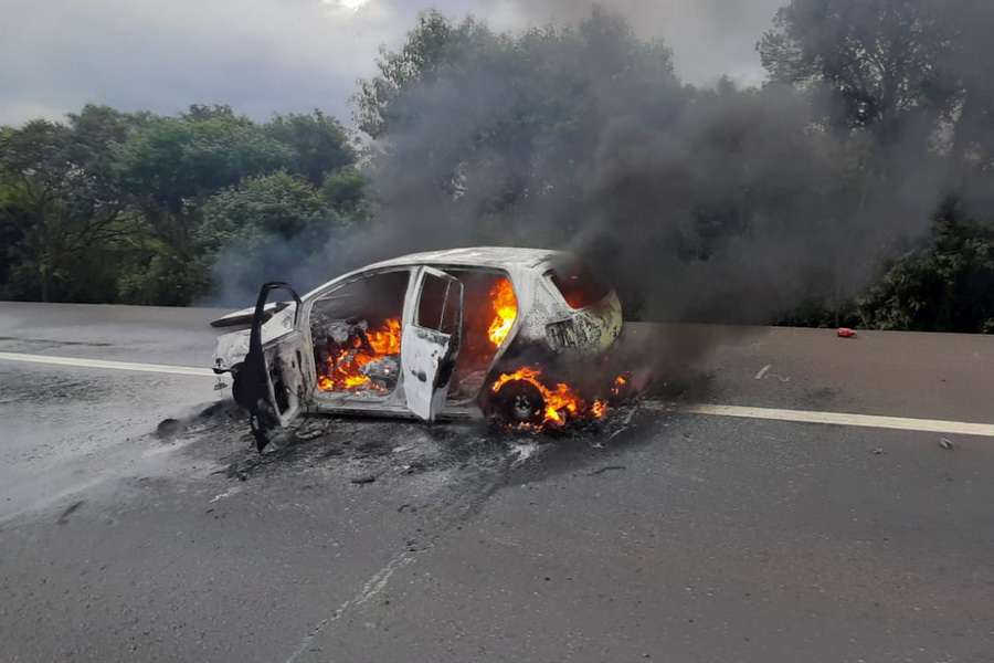 Um veículo foi consumido pelo fogo, na tarde desta sexta-feira (03), na freeway.