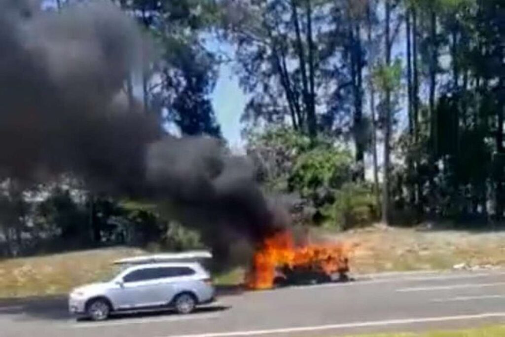 Um carro pegou fogo no final da manhã desta quarta-feira (30), na freeway, em Santo Antônio da Patrulha.