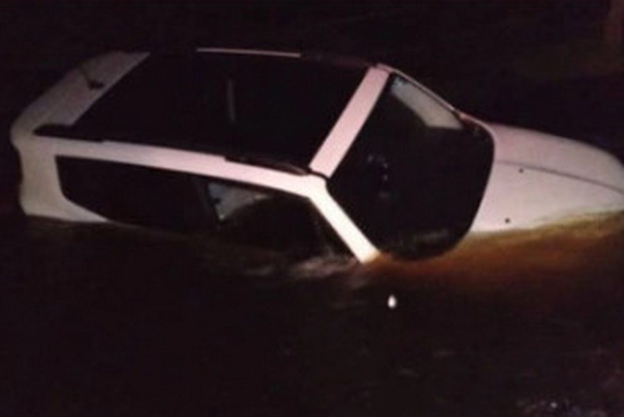 Após andarem por alguns minutos, acabaram caindo em um valo junto a lagoa, deixando o carro parcialmente submerso.