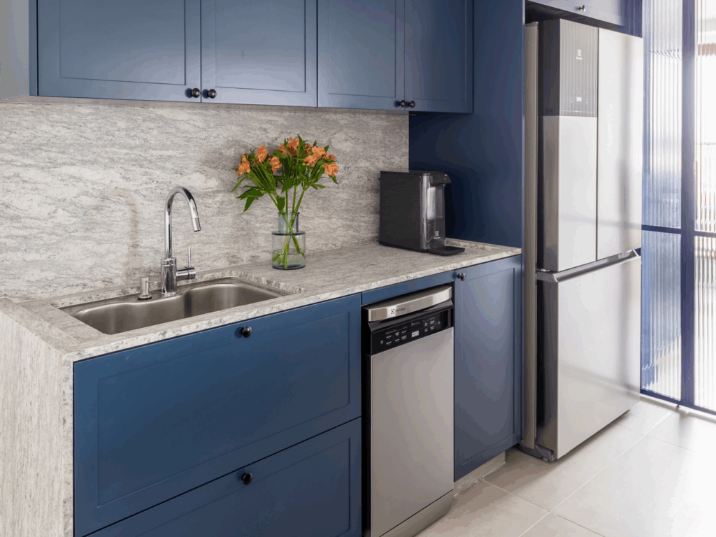 Entre os sintéticos, o quartzo industrializado (como Silestone) e as superfícies ultracompactas como o Dekton se destacam. “Esses materiais oferecem uniformidade estética, alta durabilidade e baixa porosidade — são ótimos para quem quer praticidade com visual elegante”, resume Thais Bontempi.