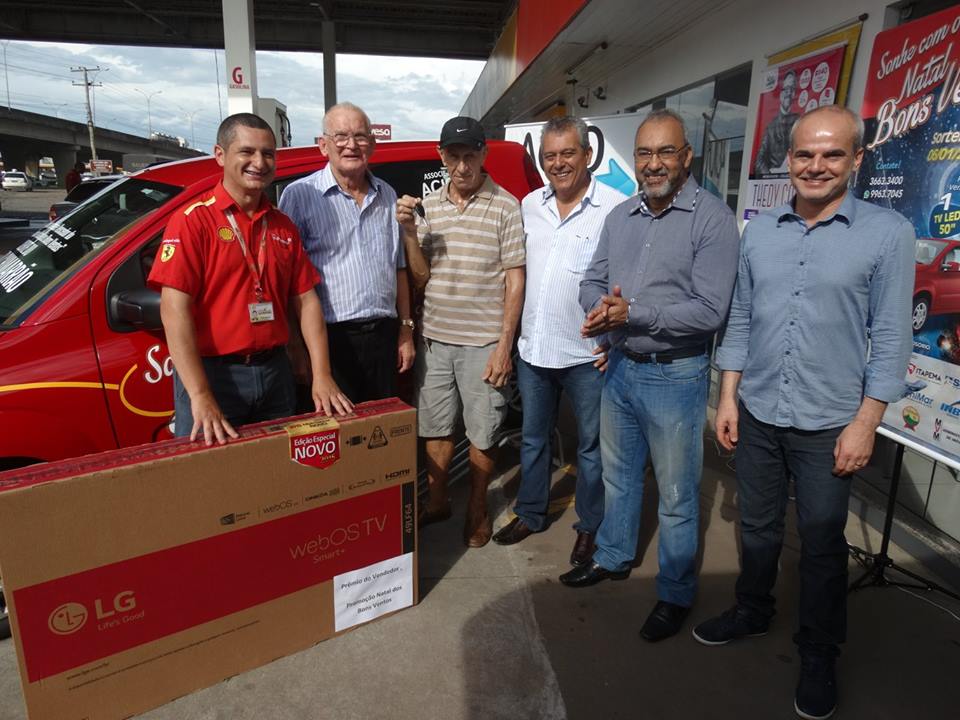 A entrega aconteceu na manhã desta quinta-feira (04), no Posto Chimarrão, onde o seu Ornaldo preencheu o cupom promocional depois de abastecer o seu carro. O Gerente do Posto Marco Anflor ganhou uma TV.