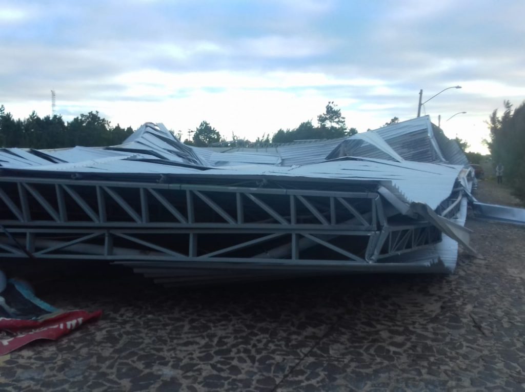 Em Capão da Canoa, telhas de um prédio onde se localiza uma lancheria foram arrancadas com a força dos ventos, fazendo com que o material ficasse no meio da rua, entre as avenidas Paraguassú e Poti.