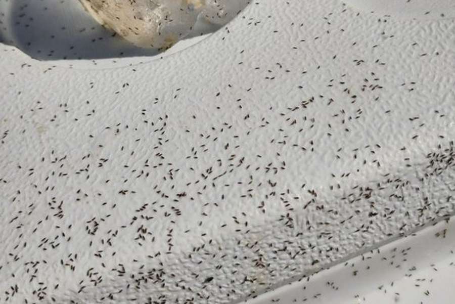 Uma infestação de insetos sobrevoou a faixa de areia da praia de Torres, no domingo (05).
