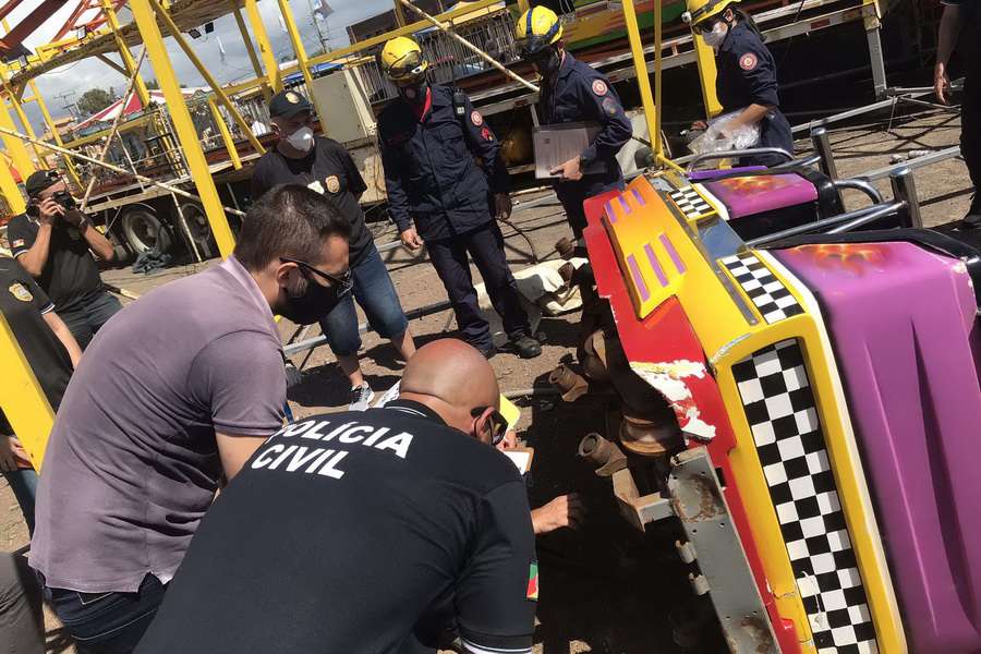 A Polícia Civil esteve no parque investigando a queda do carrinho de montanha-russa e interditou o local.